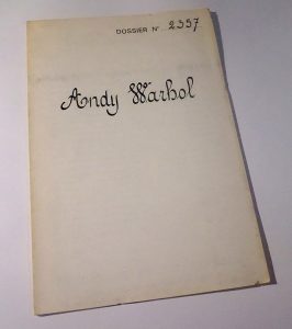 L'ensemble sous portefeuille numéroté au premier plat. (n° 2357). . Liste des œuvres exposés. Catalogue de la troisième exposition parisienne de Warhol. Bel exemplaire