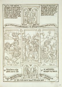 intérieure, tranches dorées (Ateliers Laurenchet). SUPERBE COPIE FIGURÉE ÀL’ENCRE SÉPIA SUR PAPIER VERGÉ ANCIEN, d’une parfaite exécution, de l’édition xylographique imprimée aux Pays-Bas vers 1460 (cf. CIBN, BB-3). Elle reproduit les 40 superbes planches de la Bible des pauvres, l’un des livres xylographiques les plus célèbres. Toutes présentent une structure identique, où se juxtaposent des scènes de l’Ancien et du Nouveau Testament. L’importance et la qualité de ce manuscrit incitent à le rapprocher des plus belles productions de Lesclabart, le calligraphe du XVII Ie siècle qui réalisa quelques copies des monuments xylographiques pour de grands amateurs tels que l’abbé Rives, Lair ou Pâris. La marque de l’Atelier à l’Arbre blessé (cf. p.7) figure sur le dernier feuillet, accompagnée du numéro d’ordre XII.