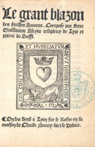 Alexis (Guillaume). Le grant blazon des fausses Amours. Compose par Frere Guillaume Alexis religieux de Lyre et prieur de Bussi. Lyon, Claude Nourry, [au colophon] : 1529. Le 6 jour du moys de May. In-16, maroquin bois de rose, triple filet doré...