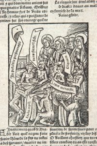 non rogné (Reliure moderne). Fragment d’une édition gothique en français extrêmement rare, imprimée en lettres bâtardes et ornée de plusieurs illustrations. Seuls 81 feuillets, portant 36 gravures sur bois qui proviennent sans doute des fonds Vérard et Trepperel, subsistent ici. Incomplet du titre et du dernier feuillet, ainsi que de nombreux cahiers ou feuillets isolés. Plusieurs feuillets mutilés réparés. Les feuillets manquants ont été remplacés par des feuillets blancs.