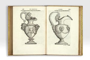 in-4, veau blond, triple filet doré, dos orné, pièces de titre rouge et noire, roulette intérieure, tranches dorées (F. Bedford). Brun, p. 116. Première édition bâloise de ce recueil comprenant les trois opuscules de Lazare de Baïf (14961547), humaniste, conseiller, ambassadeur de François Ie et protecteur du jeune Ronsard à la cour de France. Ces textes, parus pour la première fois chez Robert Estienne à Paris en 1536, traitent de questions archéologiques et forment une sorte de manuel d’éducation à l’usage des enfants : on y parle d’art naval, de l’art de se vêtir et de la décoration des vases chez les Anciens. L’illustration, copiée sur celle de l’édition originale, comprend 32 planches dans le texte : 23 bois pour le De re navali, montrant des trirèmes, des nefs pour le transport de marchandises, des bateaux fluviaux, etc. ; 3 figures de costumes pour le De re vestiaria, représentant une femme portant la stola, un sénateur romain en toge et un général en tunique militaire ; enfin, 6 figures d’aiguières ou de vases somptueux pour le De vasculis. À la fin du volume se trouve le fameux traité d’Antonio Telesio sur les couleurs, le Libellus de coloribus, paru pour la première fois à Venise en 1528. Jolie impression de Froben agrémentée de quelques lettrines ornées, avec ses deux marques typographiques : l’une sur le titre, et l’autre, plus grande, au verso du dernier feuillet. Bel exemplaire, grand de marges, établi par Francis Bedford, l’un des grands relieurs anglais du XIXe siècle.