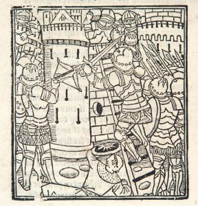 reproduit). — Brun, p. 137. — Moreau, V, n°741. Jolie édition de la première traduction française du De casibus virorum illustrium de Boccace (1313-1375), établie par l’humaniste Laurent de Premierfait. Elle a été imprimée par Nicolas Couteau, en caractères gothiques sur deux colonnes, pour le compte de plusieurs libraires parisiens : Guillaume Le Bret, les frères L’Angelier, Ambroise Girault, Étienne Groulleau, Alain Lotrian, Pierre Sergent, François Regnault, Gilles Gourmont, Jacques Kerver, ou encore Jean Petit, dont la marque typographique figure dans le cas présent au verso du dernier feuillet (Renouard, n°896). L’édition, la dernière répertoriée par Guy Bechtel dans son Catalogue des gothiques français, possède un titre imprimé en rouge et noir, placé dans un bel encadrement gravé sur bois de forme architecturale provenant du matériel de Gilles Gourmont, avec ses initiales E et G ; celui-ci est orné, sur les colonnes, de quatre médaillons contenant les portraits et emblèmes des évangélistes, et, dans les registres supérieur et inférieur, d’une figure du Christ triomphant, des armoiries de la ville de Cologne et celles du libraire Gourmont, et d’une scène montrant les rois mages présentant des offrandes à l’enfant Jésus nouveau-né. Cet encadrement, de style bâlois, avait déjà servi pour les éditions parisiennes du Perceforest (1531-1533) et du Thésée de Cologne (1534) (cf. n°212), mais ne contient pas le nom de Gourmont dans le petit cartouche situé en pied. L’illustration comporte 7 bois gravés, dont un qui se répète une fois, issus pour certains du fonds du libraire Antoine Vérard, qui avait fait paraître deux éditions de ce livre en 1494 et vers 1506. Le De casibus virorum illustrium, composé par le martre florentin dans la seconde moitié du XIVe siècle, est un recueil de biographies à visée morale racontant la fin tragique, renversés par fortune, d’hommes et de femmes célèbres depuis la création du monde : on y trouve ainsi les malheurs d’Athalie, de Denys de Syracuse, de Mithridate, du roi Arthur, de Philippe Le Bel, et de beaucoup d’autres encore. L’ouvrage fut traduit pour la première fois en langue française par Laurent de Premierfait (vers 1370/1380- 1418), qui en écrivit deux versions, l’une en 1400, l’autre vers 1409. Cet érudit et fin latiniste, originaire de Champagne, connut une brillante carrière en tant que traducteur à la cour de Charles VI. Sa traduction fut imprimée pour la première fois à Bruges par Collard Mansion en 1476. Ex-libris manuscrit daté 1540 sur le titre. Ex-libris armorié de Michel Begon, 1709, intendant de la marine à Rochefort et collectionneur français (1638-1710). Cachet de la bibliothèque de l’abbé Ferdinand Person, chanoine honoraire et membre de l’Institut des provinces à Rochefort, apposé sur le titre. Son ex-libris imprimé, daté 1874, se trouve au premier contreplat. Exemplaire en reliure du XVIIe siècle, très certainement d’origine provençale. Les quatre premiers feuillets sont salis ; mouillures à quelques feuillets, très prononcées à la fin du volume. Traces d’humidité en bas des plats.