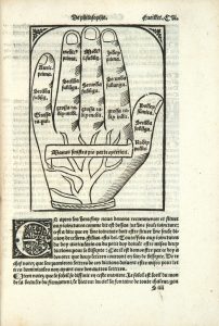 fauve, dos orné, pièce de titre rouge, tranches rouges (Reliure du xviiie siècle). Bechtel, C-409. — Caillet, I, n°2719. — Moreau, IV, n°952. Encyclopédie scientifique populaire, le Cœur de philosophie est une compilation d’un traité attribué à un certain Jean Bonnet, d’un abrégé du De sphera de Johannes de Sacro Bosco et d’une traduction du Comput d’Arianus. Elle se divise en trois livres, dont le premier est un dialogue philosophique entre Placides et Tymeo qui passent en revue la plupart des connaissances de l’époque. Le second s’intitule Lespere du monde et le dernier le Compost et kalendrier. Très rare édition imprimée en caractères gothiques par Antoine Couteau pour Poncet Le Preux et Jean Petit. La première citée par Guy Bechtel est celle de Vérard, 1504. Elle débute par un titre agrémenté d’une initiale L à visage et orné de la grande marque typographique de l’un des deux libraires associés, en l’occurrence, ici, celle de Jean Petit (Renouard, n°891). L’illustration se compose de 60 gravures sur bois, de formats variés, dont la plupart concernent l’astronomie et la chiromancie : on y remarque surtout des représentations de mouvements de planètes, d’éclipses, etc., et de belles figures de mains qui soutiennent divers moyens mnémotechniques pour connaître les particularité du calendrier, jours auxquels débutent les mois de l’année, etc. Bel exemplaire relié au XVII Ie siècle, grand de marges. Ancien ex-libris manuscrit sur le titre, presque effacé. Petite galerie de ver dans la marge inférieure des 16 derniers feuillets, tache d’encre brune touchant le texte du feuillet L2 et fragilisant le papier. Pâle mouillure en tête des deux premiers feuillets. Petites restaurations aux coiffes et aux coins.