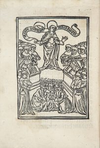 intérieure, tranches dorées sur marbrure (Duru et Chambolle 1863). Bechtel, F-9. — BBA, Aquilon, Normandie, I, p. 28, n°67. — Brun, p. 187. — Frère, I, pp. 447-448. — Lepreux, III/I, p. 331, n°53. ÉDITION GOTHIQUE ROUENNAISE,DE TOUTE RARETÉ, d’un livre singulier composé par maistre pierre fabri docteur es ars prestre et cure de merey natif de la ville de rouen, ayant sa singuliere et parfaicte devotion a la dicte glorieuse mere de dieu soubz ledit tiltre de sa c ôception. Pierre Fabri (ou Lefebvre), né à Rouen au XVe siècle, poète, rhétoricien et orateur célèbre, était surnommé le « Quintilien normand ». Curé de la paroisse de Merey dans l’Eure, il fut nommé en 1487 prince du Puy de l’Immaculée Conception de Rouen, une académie littéraire qui se réunissait en l’église Saint-Jean et qui récompensait les meilleurs « palinods », c’est-à-dire les pièces en vers en l’honneur de la Vierge Marie et sur l’Immaculée Conception (cf. Abbé Guéry, Palinods ou Puys de poésie en Normandie, 1916). Son Dialogue, qui se présente sous la forme d’une pièce à deux personnages dissertant sur la maternité miraculeuse de la Vierge, se rattache à la collection des pièces relatives aux palinods de Rouen. Impression en petits caractères gothiques textura, à 44/45 longues lignes à la page très peu interlignées. L’ÉDITION EST SORTIE DES PRESSES DU PROTOTYPOGRAPHE DE ROUEN, MARTIN MORIN (1490-1523), dont la marque typographique occupe le verso du dernier feuillet (Silvestre, n°68). Elle s’ouvre sur un très beau titre imprimé sur 20 lignes, la première en rouge, et débutant par une initiale E ornementée. Un grand bois au verso du titre représente la Vierge apparaissant au milieu de clercs, parmi lesquels Lami, et Sodal, les personnages de la pièce. Le privilège final, signé Maillart, est daté du 24 novembre 1514. Cette édition gothique est la seule répertoriée par Guy Bechtel dans son Catalogue des gothiques français. On en connaît seulement quatre autres exemplaires, conservés à la Bibliothèque nationale de France, Nantes, l’École des beaux-arts de Paris (incomplet) et à la British Library de Londres. Selon Aquilon, l’exemplaire de Londres a été détruit ; pourtant il est toujours signalé dans le catalogue informatisé de cet établissement. Bel exemplaire, relié par Duru et Chambolle en 1863, dernière année de leur association. Il ne possède pas le feuillet supplémentaire signalé par Guy Bechtel, imprimé après l’édition, et qui ne se trouve pas dans tous les exemplaires. Des bibliothèques La Germonière (1966, n°160), et Jean-Claude Delaunay, avec leurs ex-libris.