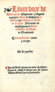 [Guevara (Antonio de)]. Livre dore de Marc aurele, Empereur, & eloquent orateur : traduict de vulgaire Castillian en fr a coys, par R.B. de la grise, Secretaire de monseigneur le Rever é dissime Cardinal de Grantmont. Nouvellement reveu & corrige....