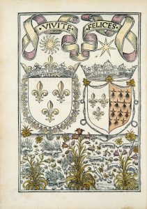 Marnef, janvier 1512. In-4, veau fauve, filet et bordure à motifs de rinceaux à froid, dos lisse portant le titre en long, deux filets intérieurs se croisant aux angles, tranches rouges (L. Claessens). Bechtel, L-195 (tirage B pour le colophon). — Moreau, II, n°394. Rédigé en 1511 par l’humaniste et historiographe Jean Lemaire de Belges (1473-c. 1515), à la demande de Louis XII, le Traité de la différence des schismes est l’un des premiers ouvrages de propagande politique. L’auteur y prétend que les schismes ont toujours été provoqués par les papes, tandis que les conciles n’ont cessé de tendre à l’unité de la religion. Cette diatribe virulente, dirigée contre le pouvoir temporel du Saint-Siège, soutint la cause de Louis XII contre le pape Jules II et légitima par conséquence ses ambitions de conquêtes italiennes. L’édition, imprimée par Geoffroy de Marnef pour l’auteur, l’une des toutes premières de ce livre, a été copiée sur l’édition originale parue à Lyon en 151 1-1512. Imprimée en lettres bâtardes, parfois avec des commentaires en latin en caractères gothiques plus petits, et agrémentée de plusieurs lettrines ornées sur fond criblé, elle est ornée de 2 bois à pleine page. Le premier, au verso du titre, représente les armoiries de France et de Bretagne et un parterre de plantes et de fleurs dans lequel s’ébattent des porcs-épics et des hermines. Il est ordinairement attribué à Jean Perréal, peintre lyonnais et ami de Jean Lemaire. Le second est une planche allégorique aux armes de Marguerite d’Autriche. Le dernier feuillet porte, au recto, le colophon et la marque de Geoffroy de Marnef (Renouard, n°715), et la belle et grande marque de l’auteur au verso. L’ouvrage contient aussi Lhistoire moderne du prince Syach ysmail et Le sauf conduit donne de plain pouvoir par le Souldan aux subgectz du Roy treschrestien, Tant pour aler [sic] en pelerinaige, au sainct sepulchre, comme trafficquer marchandement en ses terres & seigneuries doultremer, textes destinés à piquer la curiosité des lecteurs et à rendre plus plaisant le volume, ainsi que Le blason des armes des Venitiens (f. k3v°), poème de 28 vers qui avait déjà été imprimé et qui contient des prophéties sur la ruine de Venise. Des bibliothèques Merlin d’Estreux de Beaugrenier, Chandon de Briailles et Charles Van der Elst (Monaco, 1985, n°120), avec leurs ex-libris. Anciens coloris sur le bois placé au verso du titre et sur une lettrine. Trous de vers supprimant quelques lettres au cahier h. Taches claires à quelques feuillets, restauration marginale au dernier feuillet.