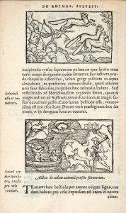 roulette, bordure à motifs de rinceaux, armoiries dorées au centre, gardes de moire rouge, tranches dorées sur marbrure (Ch. de Samblanx 1919). Thiébaud, col. 693. Édition originale de cet abrégé de la fameuse publication d’Olaus Magnus sur l’histoire des pays septentrionaux, compilé par l’humaniste et philologue flamand Corneille de Schryver, dit Grapheus d’Alost (1482-1588). Premier tirage de l’illustration, qui comprend 135 charmantes vignettes gravées sur bois par Anton Sylvius, alias Bosche, qui seraient des copies réduites de celles de l’édition originale. Les figures représentent principalement des scènes de mœurs et de vie quotidienne. Parmi celles-ci, une soixantaine ont trait à la chasse et la pêche et montrent les animaux sauvages de ces contrées : on y aperçoit ainsi des hommes pêchant le saumon et le phoque au harpon, l’anguille au filet, la pêche à la ligne sous la glace, des poissons monstrueux, ours, loups, rennes, lynx, martres, castors, etc. Cette série de gravures constitue une importante contribution iconographique à l’histoire des pratiques cynégétiques et halieutiques dans les régions scandinaves. L’ouvrage du Suédois Olaus Magnus (1490-1557), archevêque d’Uppsala qui vécut en exil entre Venise et Rome, est un document précieux sur les mœurs des habitants du Nord. Il parut à Rome en 1555. L’auteur y décrit en effet, dans les moindres détails, la vie de ces peuples, leur habillement, leurs superstitions, leurs légendes, le commerce, le climat de ces régions, etc. Bel exemplaire, en reliure doublée de Charles de Samblanx, l’un des maîtres de la reliure belge à la fin du XIXe et au début du XXe siècle. De la bibliothèque Pierre Mouchon, avec son ex-libris gravé, célèbre collectionneur de livres sur la chasse et auteur d’un supplément à la bibliographie cynégétique de Jules Thiébaud. Petite mouillure marginale à quelques feuillets.