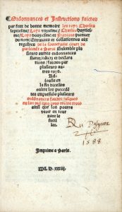Ordonnances. — Ordonnances et Instructions faictes par feux de bonne mémoire les roys Charles septiesme, Loys unziesme, Charles huytiesme, Loys douziesme, et Francois premier du nom, Extraictes et collationnes aux registres de la souveraine cour...
