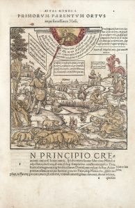 moderne). Lonchamp, n°2574. Édition originale, très rare, de la première chronique universelle parue en Suisse. C’est l’un des tous premiers livres imprimés à Berne par Matthias Bienenvater, dit Apiarius, connu pour avoir introduit la typographie dans cette ville vers 1537. Mentionné d’abord comme relieur à Nuremberg, puis à Bâle, Apiarius s’était associé à Peter Schöffer à Strasbourg pour éditer des livres de musique avant de s’installer à Berne. La jolie marque typographique d’Apiarius, représentant un ours grimpant à un arbre pour se nourrir de miel, figure sur le titre. Elle est différente de celle qu’il utilisa en Alsace au début des années 1530 (cf. Silvestre, n°587 et 670). L’ouvrage est une chronique abrégée de l’Histoire depuis la Création jusqu’à la fin des années 1 530. Il fut inscrit sur les registres de l’Index, en particulier à cause de la dissertation qu’il contient sur la papesse Jeanne. L’illustration contient un grand nombre de gravures sur bois de dimensions variées montrant des portraits de rois et de papes, des scènes bibliques et historiques, des arbres généalogiques, etc., ainsi que 2 grandes figures, l’une représentant la Création et attribuée à Jacob Kallenberg, l’autre une Nativité, signée du monogramme de Hans Galatin ou de Claus Hagenbach (cf. Nagler, II, n°160). LES BOIS ONT ÉTÉ RÉHAUSSÉS ÀL’ÉPOQUE D’ENCRE BISTRE. Bien que distribué partiellement sur les bois, ce coloris, modeste, donne vie de manière plaisante à l’illustration. Ex-libris manuscrit ancien sur le titre : V[]het Vernet dono me possidet. Cachet du XIX siècle à l’encre bleue sur le titre de L. Derôme. Rousseurs uniformes.