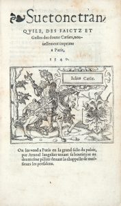 Suétone. Suetone tranquile, des faictz et Gestes des douze Caesars, nouvellement imprime aparis. Paris, Arnoul L'Angelier, 1540. In-8, maroquin violine, janséniste à long grain, dos à cinq doubles nerfs, double filet intérieur doré, tranches...