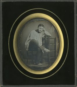 Photographe non identifié Autoportrait en blouse Daguerréotype sixième-de-plaque Vers 1 850 A vue 7,3 x 5,6 cm, ovale