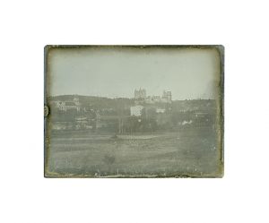 Louis Joseph Deflube (Paris 1797-Pierrefonds 1884) Le château de Pierrefonds dominant la ville et le lac Daguerréotype pleine plaque Vers 1845 A vue 16 x 21,4 cm dans son cadre d'origine Provenance : D'un ensemble de daguerréotypes de l'auteur,...