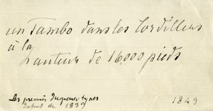 précision :« Les premiers daguerréotypes datent de 1 839 » Note : Un Tambo (dans la langue Quecha) est un lieu de repos au bord d'une route, dans les Andes, du sud de la Colombie au nord de l'Argentine L'altitude de 1 6000 pieds correspond à 4876 mètres