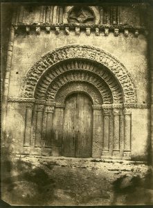 Gustave Le Gray (Villiers-le-Bel 1820-Le Caire 1884) Auguste Mestral (Rans 1812-1884) Portail du transept sud, église Saint-Pierre, Aulnay (Charente-Maritime) 1 851 (Mission héliographique) Épreuve non montée, sur papier salé d'après un...