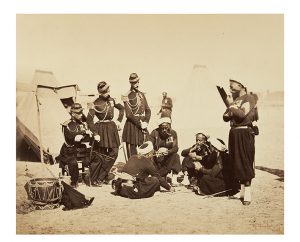 Gustave Le Gray (Villiers-le-Bel 1820-Le Caire 1884) Zouaves de la Garde Impériale Camp de Châlons [le jeu de la drogue] 1857 Épreuve sur papier albuminé d'après un négatif verre 30,2 x 36,9 cm Timbre humide rouge de la signature du photographe...