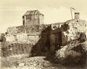 Jean-Charles Langlois (Beaumont-en-Auge 1789-Saint-Hymer 1870) Tour Malakoff Guerre de Crimée 1855 Épreuve sur papier salé-albuminisé d'après un négatif papier 25,4 x 31 ,8 cm Légende et signature manuscrite à l'encre et timbre sec du...