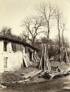 Auguste Violin (Berlin vers 1816-Saint-Leu 1878)* Étude de motif, chaos pittoresque devant une ferme Vers 1 855 Épreuve non montée, sur papier salé-albuminisé d'après un négatif papier 25,8 x 1 9,8 cm Note : Les 3 variantes de ce lieu, propice...