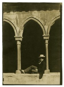 Gustave Le Gray (Villiers-le-Bel 1820-Le Caire 1884) Auguste MESTRAL (Rans 1812-1884) Gustave Le Gray posant dans le cloître de l'église abbatiale Sainte-Marie d'Arles-sur-Tech 1851 (durant la Mission héliographique) Épreuve non montée, sur...