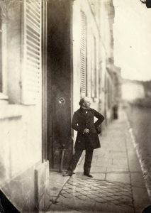 Charles Negre (Grasse 1820-1880) Le sculpteur Auguste Préault devant le 21 quai de Bourbon, Paris Vers 1856 Épreuve non montée, sur papier albuminé d'après un négatif verre 17,3 x 12,3 cm Provenance : Collection M.T. et A. Jammes (acquis de la...