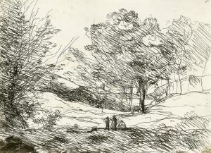 Jean-Baptiste Camille Corot (Paris 1796-1875) Souvenir du Lac Majeur Cliché-verre 1871 Épreuve sur papier salé d'après un négatif verre 18,8 x 22,9 cm Timbre sec du tireur « Desavary-Dutilleux » Littérature : Melot. L'œuvre gravé de Boudin,...