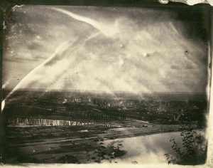 des problèmes sur la couche de collodion, apportent un effet dramatique inattendu à une vue topographique classique. On peut penser que le photographe, au sortir du laboratoire, s'est satisfait de ce ciel d'apocalypse Seule épreuve connue