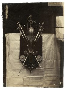 André Adolphe Eugène Disderi (Paris 1819-1889) Trophée d'armes aux épées et chanfrein Vers 1860 Épreuve non montée, sur papier albuminé d'après un négatif verre 29,4 x 21 cm Étiquette portant le numéro 51 dans le négatif Provenance :...