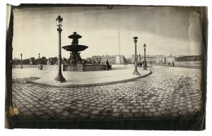 André Adolphe Eugène Disderi (Paris 1819-1889) Place de la Concorde, Paris Vers 1858 Épreuve non montée, sur papier albuminé d'après un négatif verre 17,5 x 29 cm (la vue), 19,3 x 30,8 cm (l'épreuve avec marges) Léger froissement dans le...