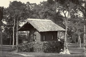 Paul Berthier (Paris 1822-Gasville Oisème 1912)* Chalet de fantaisie et élégantes dans un parc Vers 1860 Épreuve sur papier albuminé d'après un négatif verre 25,8 x 38,5 cm Timbre sec du photographe sur le montage Provenance : Fonds Berthier,...