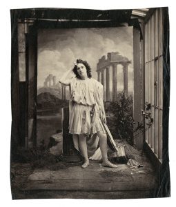 Camille Silvy (Nogent-le-Rotrou 1834-Saint-Maurice 1910) L'actrice Rosa Csillag dans le rôle d'Orphée 1860 Épreuve non montée, sur papier salé-albuminisé d'après un négatif verre 23,2 x 19,5 cm (bords irréguliers) Numéro 3 dans le négatif...