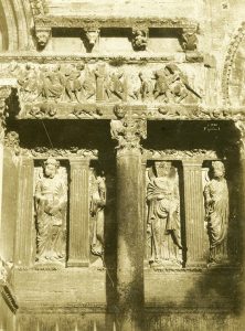 Émile Pecarrere (Pau 1816-Gelos 1904) St Gilles. Saint-Gilles-du-Gard, façade de l'abbatiale. Colonnade de gauche, Apôtres 1852 Épreuve sur papier salé d'après un négatif papier 25 x 18,6 cm Signé et situé « E.PEC St Gilles » dans le...