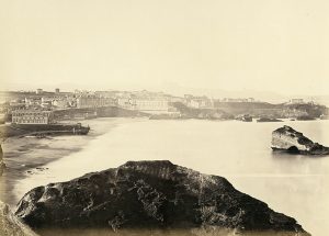 Alphonse GUYNEMER Vue générale de Biarritz prise du phare, les montagnes du fond sont en Espagne Vers 1864 Épreuve sur papier albuminé d'après un négatif verre 26 x 36,2 cm Signature du photographe à l'encre sous le coin inférieur droit de...