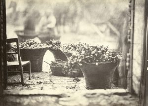 Edmond Lebel (Amiens 1834-1908) San-Geminiano, paniers de fruits sur le seuil d'une porte, vue à contre- jour vers 1865 Épreuve non montée, sur papier albuminé d'après un négatif verre 13,6 x 19 cm Provenance : Fonds du peintre et photographe...
