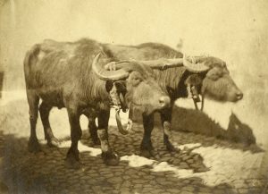 Enrico BEGUIN Paire de bœufs sous le joug. Rome Vers 1855 Épreuve sur papier salé d'après un négatif verre 14,3 x 19,5 cm Littérature : Collectif. Im Land der Sehnsucht Mit Bleistift und Kamera durch Italien, reproduction page 63 Collectif....