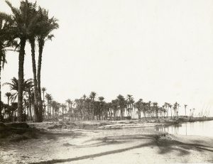 Félix Teynard (Saint Flour 1817-Saint Martin le Vinoux 1892)* El-Nacerah - dattiers, rives du Nil et barques Égypte 1 851 Épreuve sur papier salé d'après un négatif papier (Hubert de Fonteny éditeur) 24 x 30,8 cm Légende et crédit imprimés...