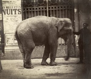 Photographe non identifié Éléphant et son cornac (indien?), Paris Vers 1880 Épreuve sur papier albuminé d'après un négatif verre 17,3 x 19,8 cm Littérature : Collectif. Der Körper der Photographie, reproduction page 115 d'une autre épreuve