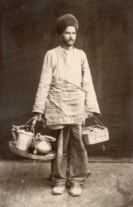 papier albuminé d'après des négatifs verre En majorité autour de 17 x 23 cm Numérotation caractéristique du photographe dans les négatifs Légendes manuscrites à l'encre en français, portées sur les montages par un entrepreneur français installé à Téhéran Littérature : Bohrer. Sevruguin and the Persian Image, reproduction de certaines des photographies de l'ensemble Note : Liste des types selon les légendes du temps, épargnant les [sic] habituellement de rigueur Tissage de la Soie dans le Ghuilan endroit de repos, de Recht à Khoudoum Marchand de Chapeaux (Recht) Ouvriers Tapissiers. Bazar de Recht Epicier. Droguiste Téhéran. Combat de béliers Persane Mendiant à Téhéran Derviche à Téhéran Nourrice persane Md de Thé (Téhéran) Mirza (Ecrivain) Nettoyage du blé (Salamaste) Derviche Marchand de Figues Derviche à Ispahan Aveugles à Téhéran Persane Vendeur de Sirop à Chiraz Derviches et fumeurs d'opium Persane fumant le Kalijan 3 nus féminins (sans légende) Gavame-el-Dohulet et sa suite Mendiant (ghuilan) Téhéran. Pendant le mois de Moharem. Tortures volontaires Khurde Caravane dans le Khurdistan Persanes Sur le Kharzan (village) Station de Yangi-Iman route de Kasrin à Téhéran Prière et distribution d'argent aux pauvres champ de manœuvres Caravane route de Cachan Bazar à Recht Repos persan Portefaix (Téhéran) Fumeur de Haschich Téhéran. Md de thé École à Téhéran (avenue des diamants) Nomades dans le Lauristan Persanes Persane Persanes en rue à Téhéran Persanes. Mouture du blé Mendiant à Téhéran (Eté) Couffes sur l'Euphrate (Bagdad) Persan Téhéran. Md de Kébatchi Md de Pasteques (Téhéran) Téhéran. Mendiants et persane Chaldéene Nomades à Taliche