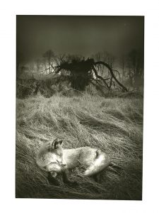 Olivier Meriel (Saint-Aubin-sur-Mer 1955) Le renard dans la brume Février 1992 « Tirage sur papier argentique chlorobromure hongrois fort, viré au selenium et au platine » 29 x 20,1 cm (la vue), 40,4 x 30,1 cm (la feuille) Exemplaire 2/5 Titre,...