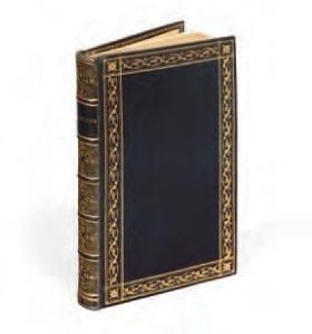 fleurettes serties de filets dorés, dos à nerfs ornés d’un décor à fond criblé, doublure et gardes de moire jonquille, sertie d’une roulette dorée, gardes de vélin, tranches dorées (Rel. P. Bozerian). éDITIoN orIGINaLe, très rare. Poète et historien italien, on doit à Pierre Bizzari (1525-ca. 1586) des relations de l’histoire de Venise et des guerres contre les Turcs, ainsi que ce volume de pièces en prose et en vers, dont la première est dédiée à la reine elisabeth Ire, reine d’angleterre, tandis que la deuxième l’est à Marie, reine d’écosse. exemplaire d’antoine-augustin renouard (1765-1853) relié par Jean-claude Bozerian (1762-1840), son praticien préféré. comme nombre d’ouvrages de sa bibliothèque, il s’ouvre et se ferme sur des gardes de vélin. Il est très bien conservé. Dimensions : 157 x 104 mm. Provenances :antoine-auguste renouard ;richard Heber ;Librairie Bernard Quaritch (Cat.,1929,A most important collection of publication of the Aldine press, pp.66-67) ; Hélis (mention manuscrite) ; Sir robert abdy (Cat. II, 29-30 avril 1976, n°24). Expositions : culot (P.), Relieurs et reliures décorées en France aux époques Directoire et Empire, Bibliotheca Wittockiana, 16 sept. 2000-10 févr. 2001, Bruxelles, n°80, avec reproduction ; […],Une vie, une collection, Bibliotheca Wittockiana, 10 oct. 2008-28 févr. 2009, éditions Faton, 2008, pp. 70-71 (notice sur renouard, avec reproduction). renouard (a.-a.), Catalogue de la bibliothèque d’un amateur, III, p. 283, « in-8. mar. bl. moire, dent. De première reliure et comme broché » ; renouard (a.-a.), Annales de l’imprimerie des Alde, renouard, 1834, pp. 198-199, n°15 ; Jammes (a.), Les Didot, Paris, 1998, p. 41 ; culot (P.), Jean-Claude Bozerian, un moment de l’ornement dans la reliure en France, n°19, avec reproduction, motifs n°9, 12, 35 et 39 (pl. I, II et IV).