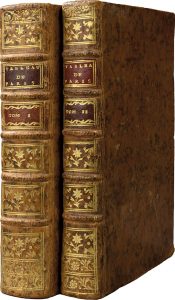 ff., tableau et plan dépl. déchiré sans manque, veau fauve de l'ép., dos à nerfs orné, p. de t. de mar. rouge. Description intéressante surtout au point de vue artistique. (Joint du même :) Journal du citoyen. La Haye, 1754, rel. idem. X, 484 pp. Nombreux renseignements et chiffres sur la vie économique et sociale de Paris. (Ens. 2 vol.)