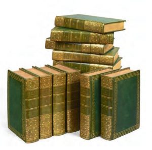 roulette aux palmettes sertie de doubles filets, chaînette, semé au petit fer en écoinçon, l’ensemble doré, au centre, chiffre [c] couronné frappé à l’or, dos à nerfs orné d’un décor à fond criblé, doublure et gardes de tabis bleu céleste, sertie d’une roulette aux palmettes dorée, tranches dorées (Rel. P. Bozerian Jeune). Seconde édition de la traduction italienne d’annibal caro. elle fut publiée pour la première fois par Bodoni aux frais du marquis de Brême, en 1786. Son tirage restreint (soit 56 exemplaires) amena l’imprimeur parmesan à donner celle-ci en 1793. annibal caro (1507-1566), un poète de l’entourage des Farnese, à Parme. Secrétaire de la famille ducale, annibal caro composa une œuvre poétique et fit de nombreuses traductions d’auteurs anciens. Parmi celles-ci, son Énéide est encore aujourd’hui considérée comme un chef-d’œuvre. Une impression de Giambattista Bodoni (1740-1813), le rival de Firmin-Didot. Imprimeur et graveur en lettres, Bodoni s’installa à Parme en 1768 pour diriger l’imprimerie ducale. Il y réalisa des éditions d’une grande élégance typographique en utilisant dans un premier temps des caractères inspirés de ceux dessinés par Pierre-Simon Fournier (1712-1768). en 1798, il créa son propre caractère, très contrasté et d’une extrême finesse de ligne, auquel il laissa son nom. édition limitée à 250 exemplaires. exemplaire relié par François Bozerian (1765-ca 1820) pour caroline Murat (1782-1839), reine de Naples. Troisième sœur de Napoléon, Maria-Nunziata-carolina Bonaparte épousa le général Joachim Murat (1767-1815) en 1800. elle devint reine de Naples en 1808. D’un caractère énergique et ambitieux, elle exerça une grande influence sur son époux et prit part directement aux affaires du royaume, jusqu’à sa destitution en 1815. conservé dans sa boîte-étui de l’époque, l’ouvrage nous est parvenu dans un état de fraîcheur exceptionnel. L’ensemble apparaît ainsi comme un délicat bijou de goût féminin. Dimensions : 157 x 104 mm. Provenances : caroline Murat, née Marie-caroline Bonaparte ; Prince d’essling (Cat. vente anonyme, Genève, 2-4 mars 1953, n°364, planche 47). Expositions : […], Une vie, une collection, Bibliotheca Wittockiana, 10 oct. 2008-28 févr. 2009, éditions Faton, 2008, p. 61, n°48, (courte notice sur caroline Murat, avec reproduction) ; culot (P.), Relieurs et reliures décorées en France aux époques Directoire et Empire, Bibliotheca Wittockiana, 16 sept. 2000-10 févr. 2001, Bruxelles, n°161, avec reproduction. Brooks, Edizioni Bodoniane, Firenze, 1927, p. 101 ; renouard (a.-a.), Catalogue de la bibliothèque d’un amateur…, III, renouard, 1819, pp. 188-190 ; olivier, 2665, fer n°3 (variante) ; Lamort (a.), Reliures impériales, p. 85.