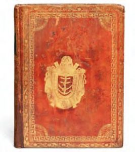 vertes (reliure ancienne). La reliure a probablement été exécutée par un praticien italien. Mors légèrement épidermés. Dimensions : 255 x 187 mm. Provenance : Joachim Murat, avec son ex-libris portant la mention « Bibliothèque de S. M. le roi ». Exposition : […], Une vie, une collection, Bibliotheca Wittockiana, 10 oct. 2008-28 févr. 2009, éditions Faton, 2008, p. 62, n°49 (notice sur Joachim Murat, avec reproduction). chadenat, 5072 ; Wilson, 101 ; Gay, 2066. claude-Louis-robert, comte de Saint-Germain (1707-1778), fit, d’abord au service de divers princes européens, puis en France, une longue carrière militaire qui le mena au portefeuille de ministre de la Guerre sous le règne de Louis XVI. D’un esprit novateur, il fut appelé aux responsabilités sur les recommandations de Turgot et réalisa, entre 1775 et 1777, de vigoureuses réformes. celles-ci bouleversèrent pour longtemps l’ensemble des institutions militaires françaises, mais la brusquerie de leur application lui valut une vive impopularité qui le contraignit à se retirer. Ses Mémoires furent mis en forme par l’abbé Dubois et publiés la première fois, en 1779, à amsterdam. exemplaire de l’impératrice Joséphine (1763-1814), provenant de la Malmaison. relié vers 1800, l’ouvrage porte le cachet humide « Bibliothèque de la Malmaison » qui fut apposé lors des ventes de mai à juillet 1829, ici sur la page de titre. orné du chiffre [PB] pour « Pagerie Bonaparte », ce type de reliure réalisé en grand nombre serait, selon christian Galantaris, de la main de l’un des cinq Bradel, ou, selon anne Lamort, du relieur charles- Pierre Bizouard, qui était installé rue des carmes à Paris. Le caractère succinct et lapidaire de l’Inventaire après décès de l’impératice Joséphine à la Malmaison, établi par Mongie, qui n’est « qu’une sélection des volumes jugés les plus intéressants à l’époque », explique que bon nombre d’ouvrages ayant appartenu à cette dernière n’y figurent pas ; tel est le cas ici.