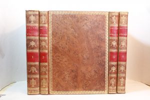 HOMÈRE. Œuvres complètes d'Homère. Traduction nouvelle dédiée au roi avec des notes littérales, historiques et géographiques [^] par M. Gin. Paris, de l'imprimerie de Didot l'aîné, 1786 ; 4 vol. in-4, veau raciné, sur les plats encdraments...