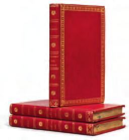 palmettes et feuilles alternées sertie d’un double filet dorés, dos à nerfs orné, roulette intérieure dorée, doublure et gardes de tabis bleu céleste, tranches dorées (Rel. P. Bozerian). Brunet, IV, 385-386 ; apollinaire (G.) et alii, L’Enfer de la Bibliothèque nationale, Mercure, 1913, pp. 224-225 ; [Gay (J.)], Bibliographie des ouvrages relatifs à l’amour…, Lille, S. Bécour, 1899, II, 439-440 et III, 583 ; Dutel (J.-P.), Bibliographie des ouvrages érotiques publiés clandestinement... entre 1650 et 1880, L’auteur, 2009, pp. 156-157 (annonce 20 gravures (n° a-487*)) ; culot (P.), Jean-Claude Bozerian, un moment de l’ornement dans la reliure en France, n°18, avec reproduction, motifs n°1, 9 et 36 (pl. I et IV). Dans son avertissement, l’expert, Silvestre, insiste sur la qualité des reliures, dont la plupart sont signées Padeloup, Derome, courteval et Bozerian, d’autres étant de la main de praticiens anglais. exemplaire de Delcro, luxueusement relié par Jean-claude Bozerian (1762-1840). en marges des feuillets, ont été soigneusement reportés par le collectionneur, le nom de ses fournisseurs (Silvestre étant le principal), ses prix d’achat, ainsi que les prix d’adjudication. on peut aisément imaginer que, comme le veut l’usage, l’exemplaire personnel du collectionneur ait été imprimé sur grand papier. Dimensions : 226 x 148 mm. Provenance : M. Delcro (annotations à l’encre). Exposition : culot (P.), Relieurs et reliures décorées en France aux époques Directoire et Empire, Bibliotheca Wittockiana, 16 sept. 2000-10 févr. 2001, Bruxelles, n°91, avec reproduction. culot (P.), Jean-Claude Bozerian, un moment de l’ornement dans la reliure en France, n°23, motifs n°12, 43 (pl. II et V), 2 (pl. X).