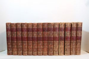 PLUTARQUE. Vies des hommes illustres de Plutarque. Traduites du grec par Jacques Amyot. Avec des notes & des observations de l'abbé Brotier. Paris, Jean-Baptiste Cussac, 1783-1784 ; 14 vol. in-8, veau marbré, encadrement de motifs dorés sur les...
