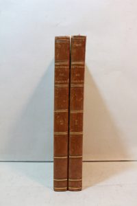 de filets dorés, tranches jaspées, [Rel. de l'époque]. Édition originale, « rare et recherché[e] » (Clouzot, p. 11). Les pages 207-210 du second tome sont célèbres pour la mystification composée d'un assemblage de caractères typographiques pris au hasard, et censés démontrer l'erreur de La Bruyère, sur lesquels Balzac ironise dans l'errata : « l'auteur y a mis toute sa pensée. » Quelques rares rousseurs. De la bibliothèque Édouard Moura, avec son ex-libris Vicaire, I, 182. Carteret, I, 58