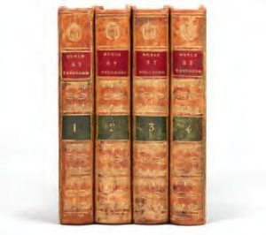 doublure et gardes de tabis vert d’eau, roulette intérieure dorée, tranches dorées (Rel. Par Drian). Plats épidermés, petites taches d’encre aux pages 235-236 du tome IV et absence de la première garde au premier tome. Dimensions : 172 x 97 mm. Provenances : Joseph Bonaparte ; Joseph-Napoléon Bonaparte, prince de Musignano, avec son « ex-libris » . Exposition : […], Une vie, une collection, Bibliotheca Wittockiana, 10 oct. 2008-28 févr. 2009, éditions Faton, 2008, p. 59, n°46 (notice sur Joseph Bonaparte, avec reproduction). Huguet (F.), Les Livres pour l’enfance et la jeunesse…, Klincksieck, 1997, pp. 167-173 et 389-390 ; Ferriot (D.), « Madame de Genlis ou la passion de la pédagogie », in Madame de Genlis, cNaM, s.d., pp. 7-15 ; Lamort (a.), Reliures impériales, p. 73. Nouvelle édition, augmentée, imprimée par Pierre Didot, l’aîné. Une figure hégémonique du Parnasse français à la fin du XVIIIe siècle et sous l’empire. Jacques Delille (1738-1813) se fit connaître en 1769 par sa traduction en vers français des Géorgiques de Virgile, dont Frédéric II de Prusse aurait dit : « Traduire ainsi, c’est créer ! » Dès lors sa renommée littéraire ne cessa de croître, lui épargnant presque les aléas révolutionnaires, pour s’achever en apothéose, en 1813, avec des funérailles quasi impériales. après la parution des Jardins, poursuivant la veine bucolique, Delille avait publié, en 1800, L’Homme des champs, poème en 4 chants, sur le thème du bonheur rural, où il évoque les phénomènes de la nature en émule de Buffon. Un frontispice, 4 figures et 8 bandeaux gravés d’après les dessins de Franz-Ludwig catel (1779-1856). Né à Berlin et élève de Karl Friedrich Schinkel, catel vécut et travailla essentiellement à rome, où il arriva en 1811. Peintre de paysages, dont ses voyages lui fournissaient les sujets, il fut l’un de ceux à remettre en faveur la peinture de vedute.