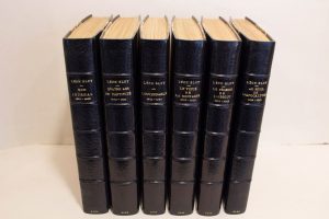 dorée, non rogné, couverture et dos conservés, [Semet & Plumelle]. Édition originale.Envoi autographe signé de Léon Bloy « à Henri Cayssac, ligueur invisible ».— JOINTS, du même, mêmes formats et reliures :- Quatre ans de captivité à Cochons-sur-Marne. (Pour faire suite au Mendiant ingrat et à Mon journal). 1900-1904. Paris, Mercure de France, 1905.Édition originale.Ex-libris manuscrit Fernand Hayward sur la couverture et le faux-titre.- L'Invendable. (Pour faire suite [^]). 1904-1907. Paris, Mercure de France, 1909.Édition originale.Envoi autographe signé de Léon Bloy « à mon cher ami Ricardo Vi^es^ ».- Le Vieux de la Montagne. (Pour faire suite [^]). 1907-1910. Paris, Mercure de France, 1911.Édition originale.Deux figures hors texte. Exemplaire numéroté du tirage courant. Envoi autographe signé de Léon Bloy « à mon cher ami Ricardo Vi^es^ ».- Le Pélerin de l'absolu. (Pour faire suite [^]). 1910-1912. Paris, Mercure de France, 1914.Édition originale.Exemplaire numéroté du tirage courant. Envoi autographe signé de Léon Bloy « à mon cher ami Ricardo Vi^es^ ».- Au seuil de l'Apocalypse. (Pour faire suite [^]). 19131915. Paris, Mercure de France, 1916.Édition originale.Exemplaire numéroté du tirage courant. Envoi autographe signé de Léon Bloy « à mon cher ami Ricardo Vi^es^ ».Exceptionnel ensemble de six volumes du Journal de Léon Bloy, dont cinq avec envoi autographe signé, presque tous à Ricardo Vi^es (1875-1943), pianiste espanol