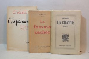 légèrement défraîchie (pet. déchirures).— JOINTS, de la même :• La Femme cachée. Paris, Ernest Flammarion, 1924 ; pet. in-8 broché.Édition originale.L'un des 400 exemplaires numérotés sur papier vergé Lafuma^ La Chatte. Paris, Bernard Grasset, 1933 ; pet. in-8, broché.É dition originale.L'un des 220 exemplaires numérotés sur papier alfa.