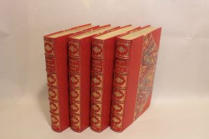 vol. in-12, demi-maroquin corail à coins, dos à nerfs ornés de motifs dorés, têtes dorées, non rognés, couverture et dos conservés, [Semet & Plumelle]. Édition originale pour chacun des quatre titres. Envois autographes signés de Willy à Paul Hervieu (deuxième vol.) et à Vincent d'Indy (quatrième vol.). Ensemble enrichi d'une carte postale autographe signée de Willy, d'une carte-lettre du même à Léon Frapié et parlant de son "humble Claudine" et d'une carte de visite avec texte autographe signé de Willy à Catulle Mendès. Un des dos n'a pas été conservé. Petites déchirures sans manque au premier f. du dernier vol. Très bel ensemble, en reliure uniforme
