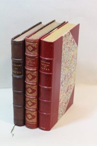 très frais et bien établi, d'une prestigieuse provenance : ex-libris Émile Henriot.— JOINTS, du même :- Les Rois en exil. Roman parisien. Paris, E. Dentu, 1879 ; in-12, demi-chagrin andrinople, dos à nerfs orné de motifs dorés, tête dorée, non rogné, premier plat de couverture conservé, [Rel. de l'époque].Édition originale sur papier ordinaire.Talvart et Place, IV, 20. Carteret I, 196. Vicaire III, 51.- Sapho. Mœurs parisiennes. Paris, Charpentier & Cie, 1884 ; in-12, demi-chagrin marron, dos à nerfs, [Rel. de l'époque].Édition originale. Exemplaire sur papier courant.